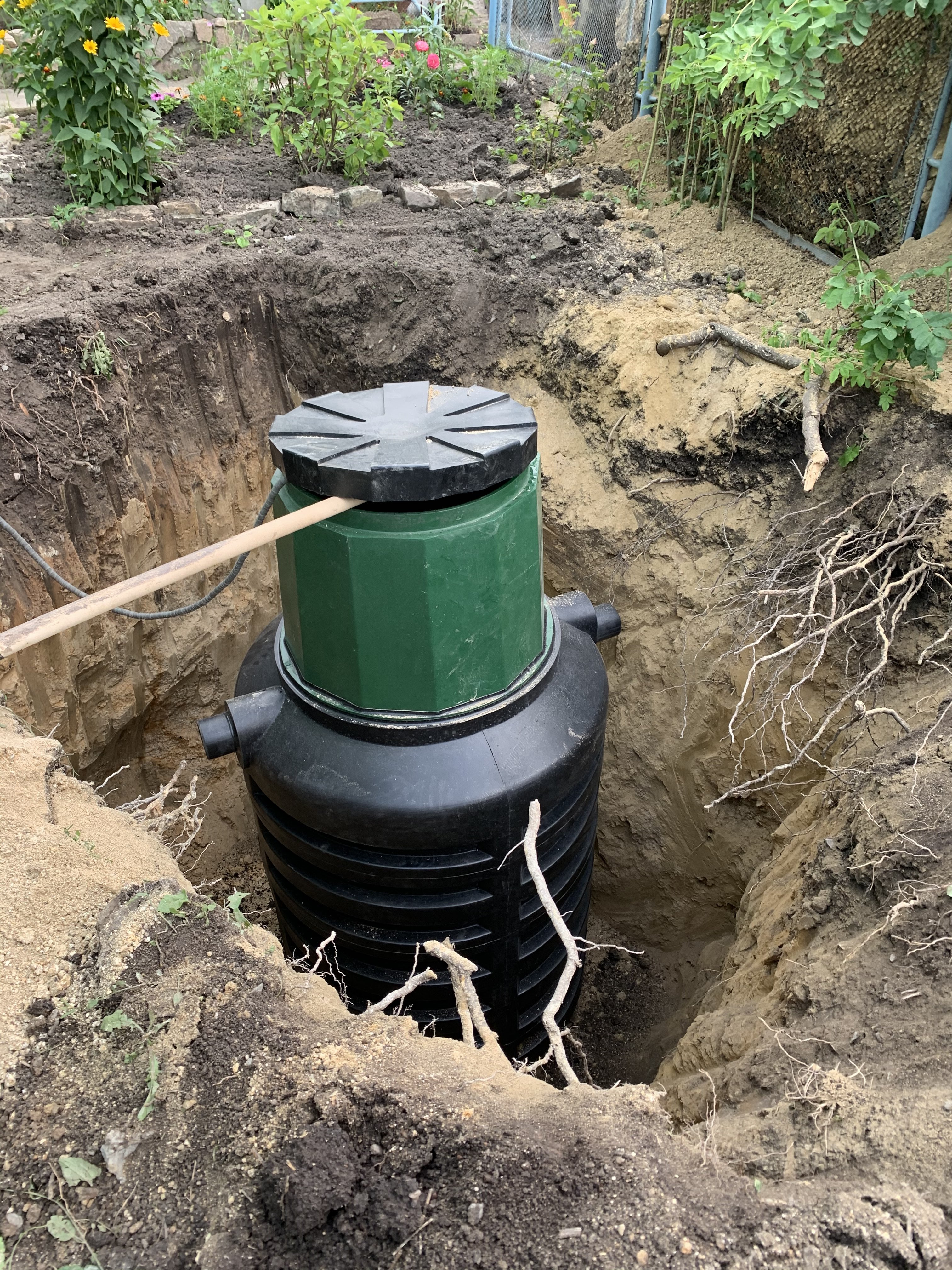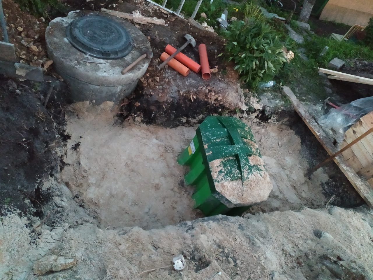 Демонтаж пластикового энергонезависимого септика и установка более прочного Евролос БИО.