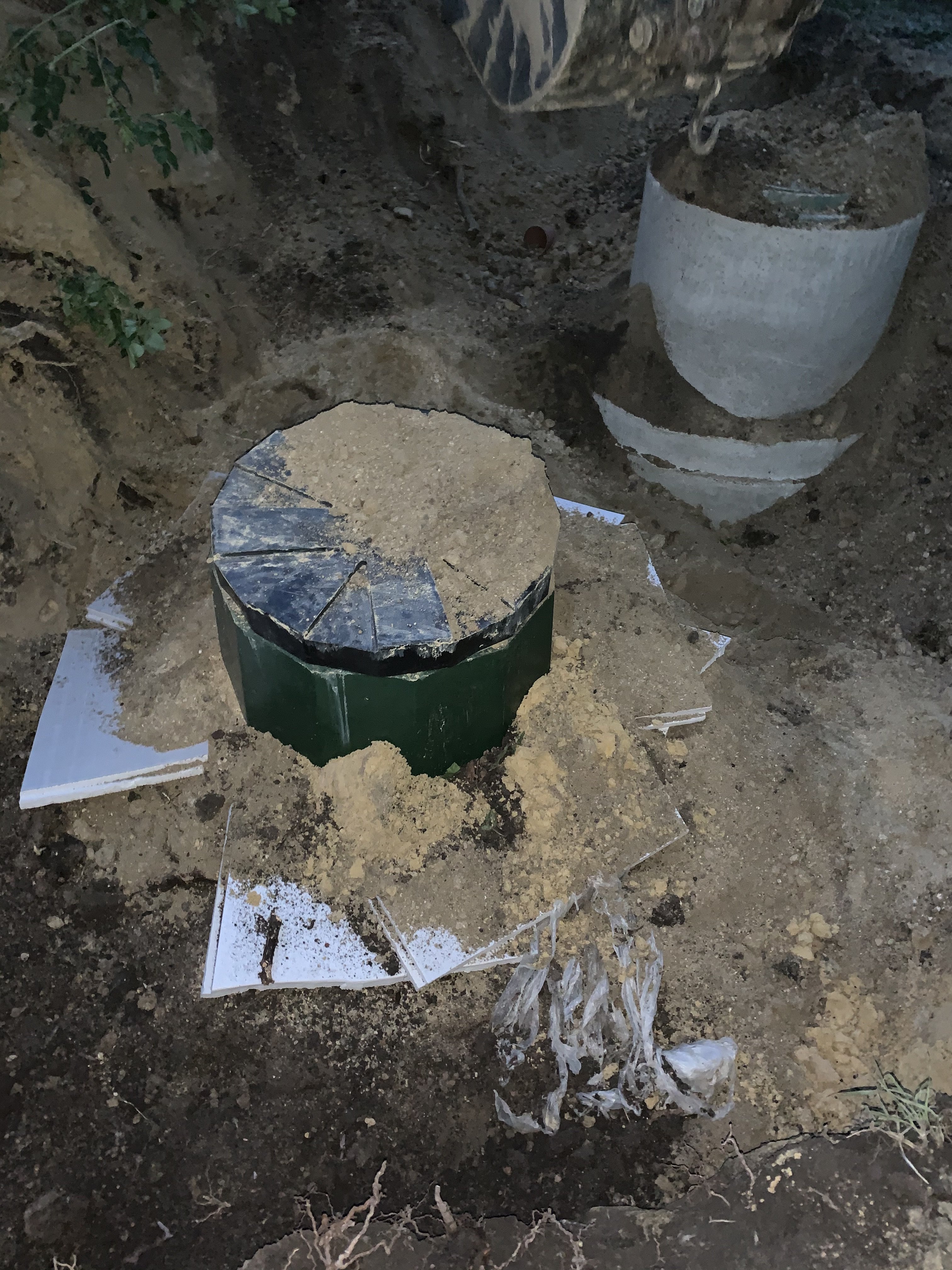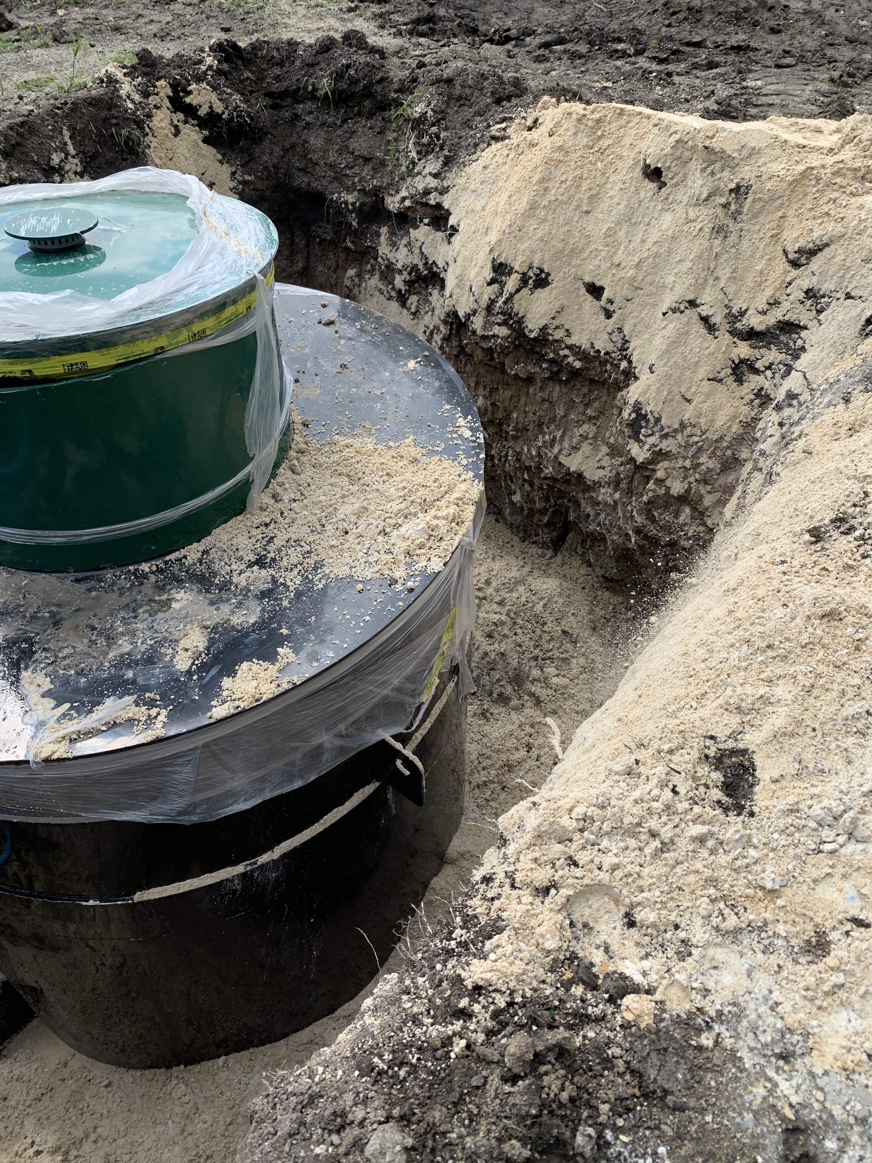 У заказчика был установлен энергонезависимый септик в глине. Без песко-цементной обсыпки из-за того что клиент хотел сэкономить, а исполнитель согласился выполнить такие работы. В итоге септик простоял пол года и его сдавило. А поле фильтрации не работало сразу т.к. это глина. Для таких грунтов требуется совсем другое решение.