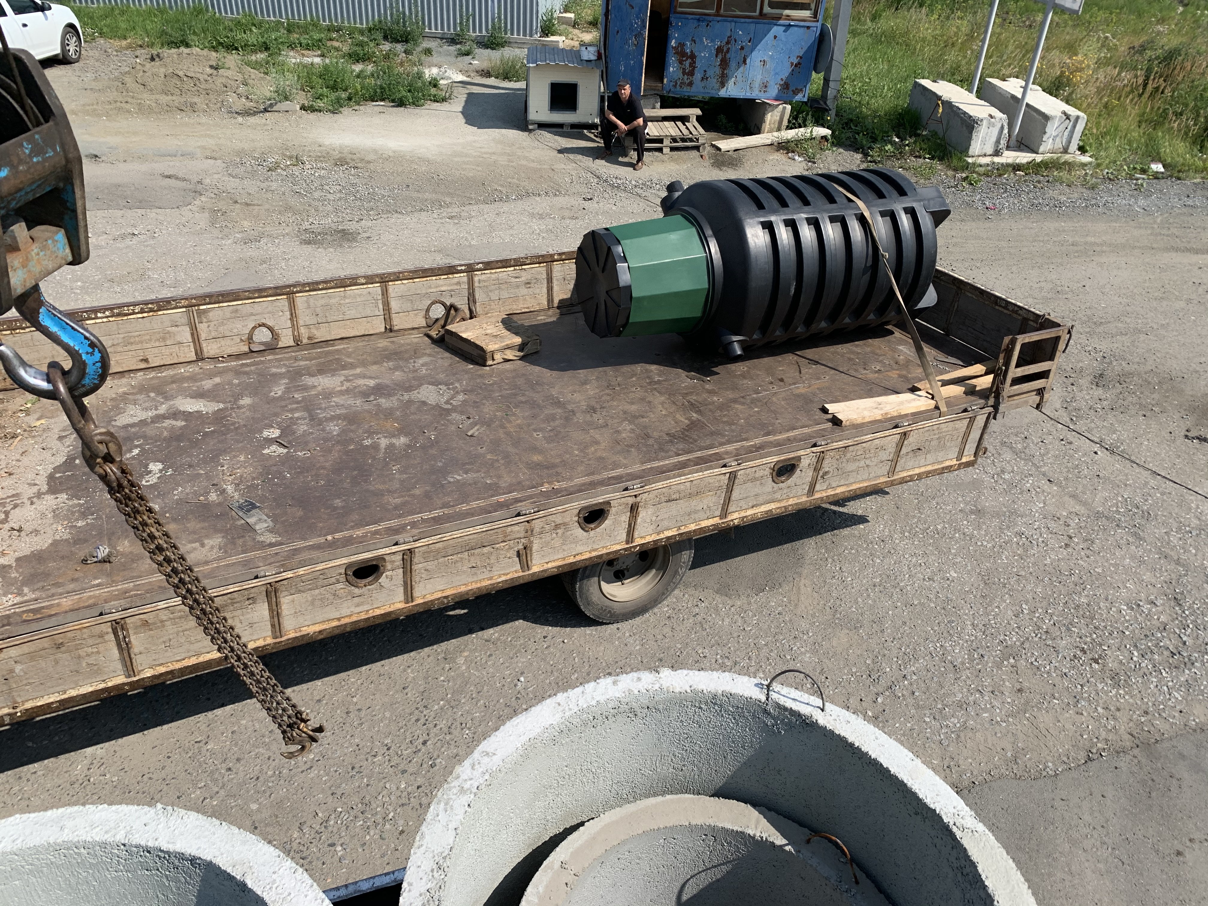 Предложили клиенту установить станцию биологической очистки Евролос БИО. Демонтировали старую емкость и тут же установили новый септик.